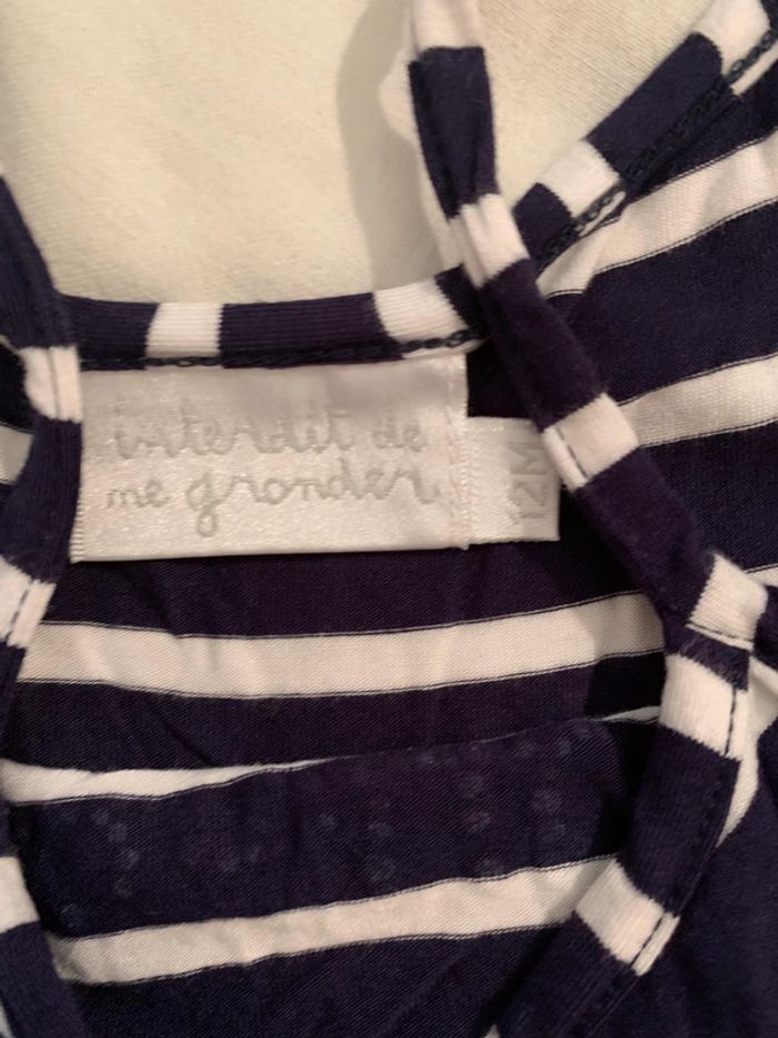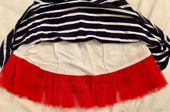 Robe ete double avec froufrou tulle rouge , marine et blanche , inscription avec strass rouge , taille 12 mois , marque Interdit de me gronder