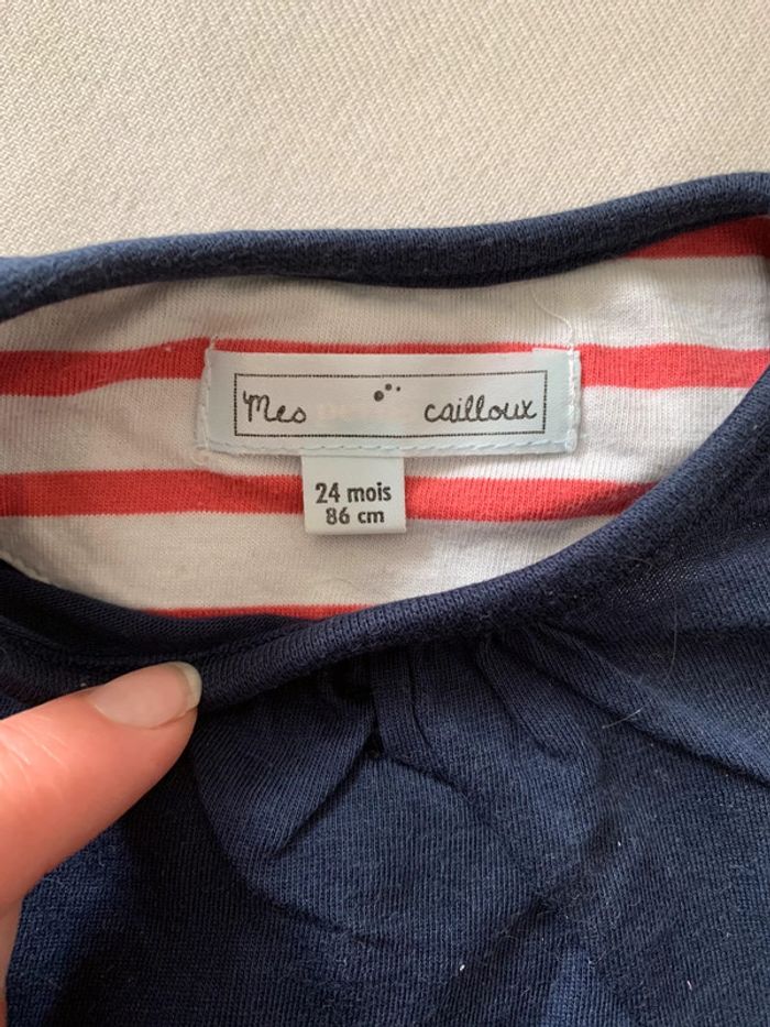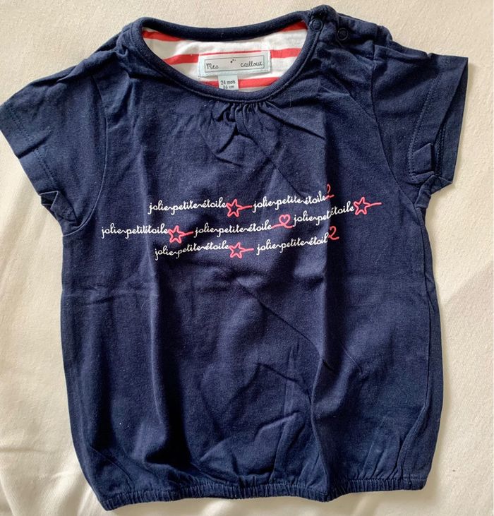 tee-shirts 24 mois, bleu marine,resserré à la taille, manches courtes. Marque Mes petits cailloux