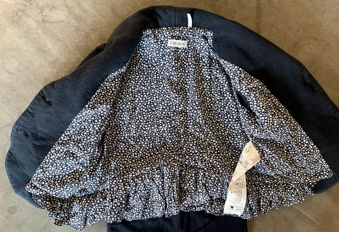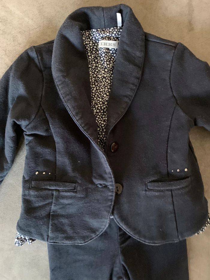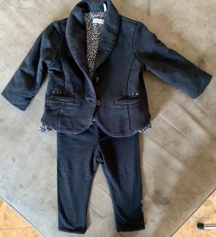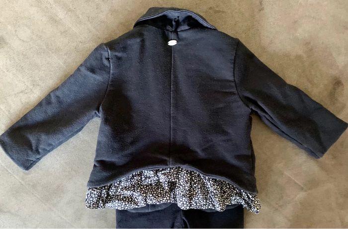 ensemble veste et legging réversible , bleu marine avec imprimé. Petit frou frou a l arrière ( trop mignon )