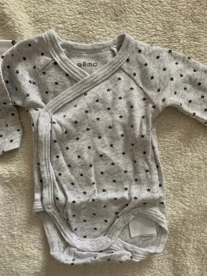 bodys taille 1 mois , ouverture sur le devant . Marque Gemo . très bon état
