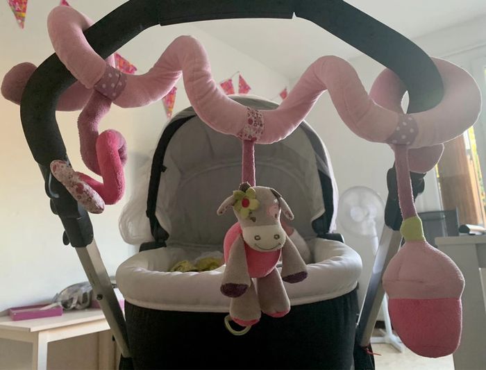 Spirale rose Nattou , 3 éléments d’éveil en matière « peluche » . Très bon état .