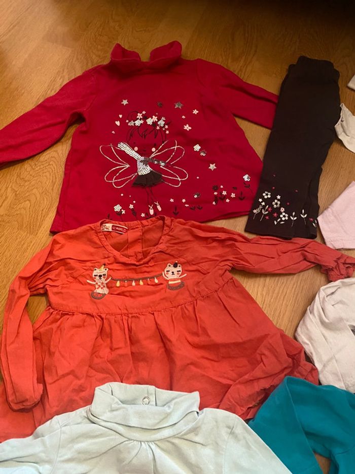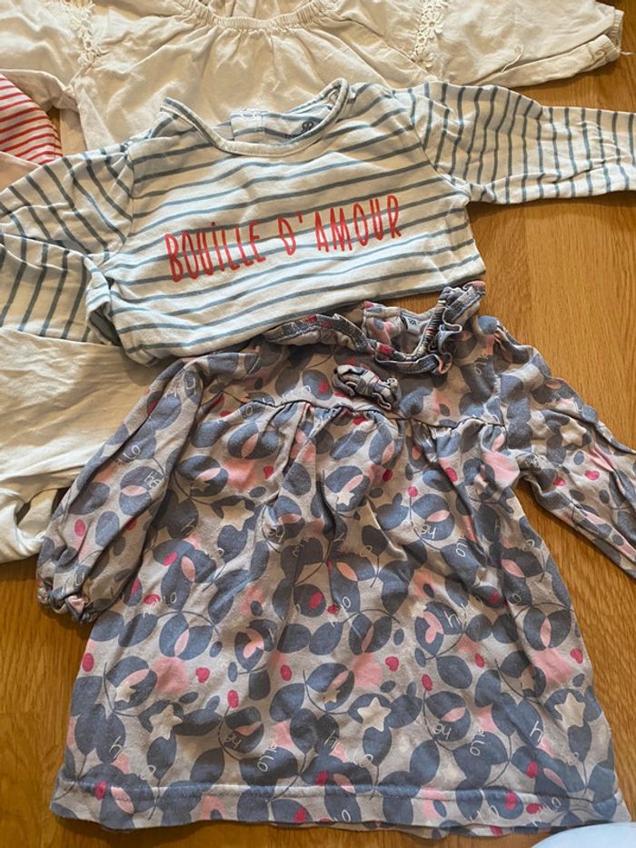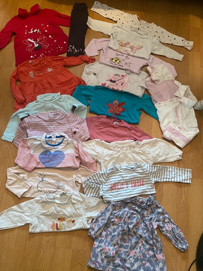 Comporte : - 1 ensemble -3 tuniques / blouses -2 sous pull -10 t-shirts à manches longues Divers marques (obaibi, petit bateau, la redoute, tape à l’œil, interdit de me gronder, DPAM…) La plupart sont en très bon état malgré 2 ou 3 tshirts bien portés et légèrement passés.