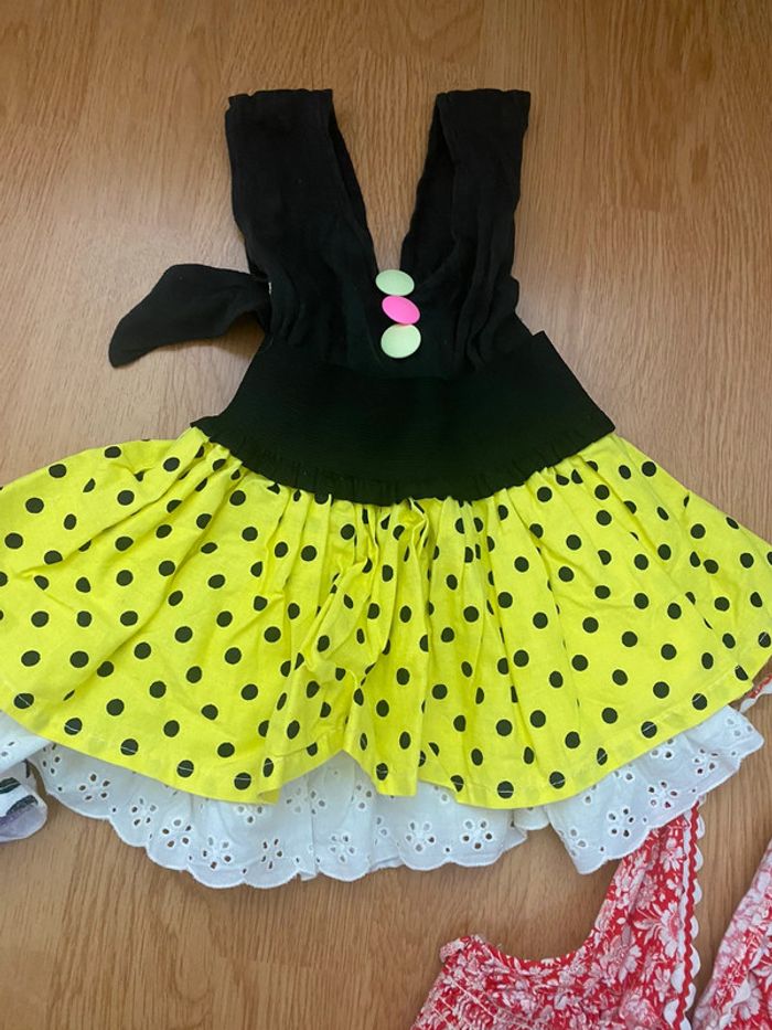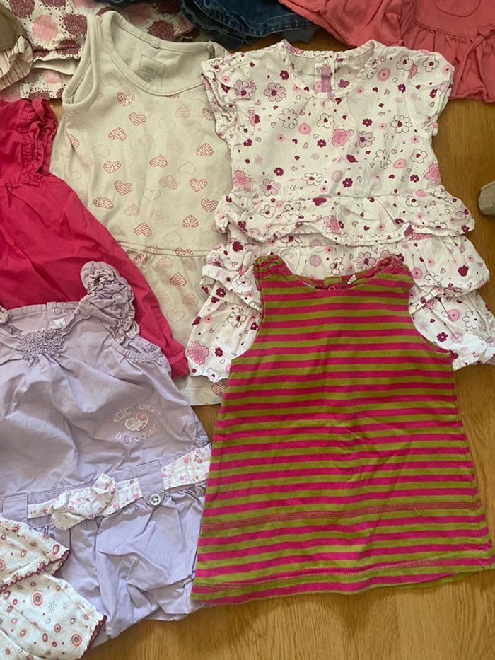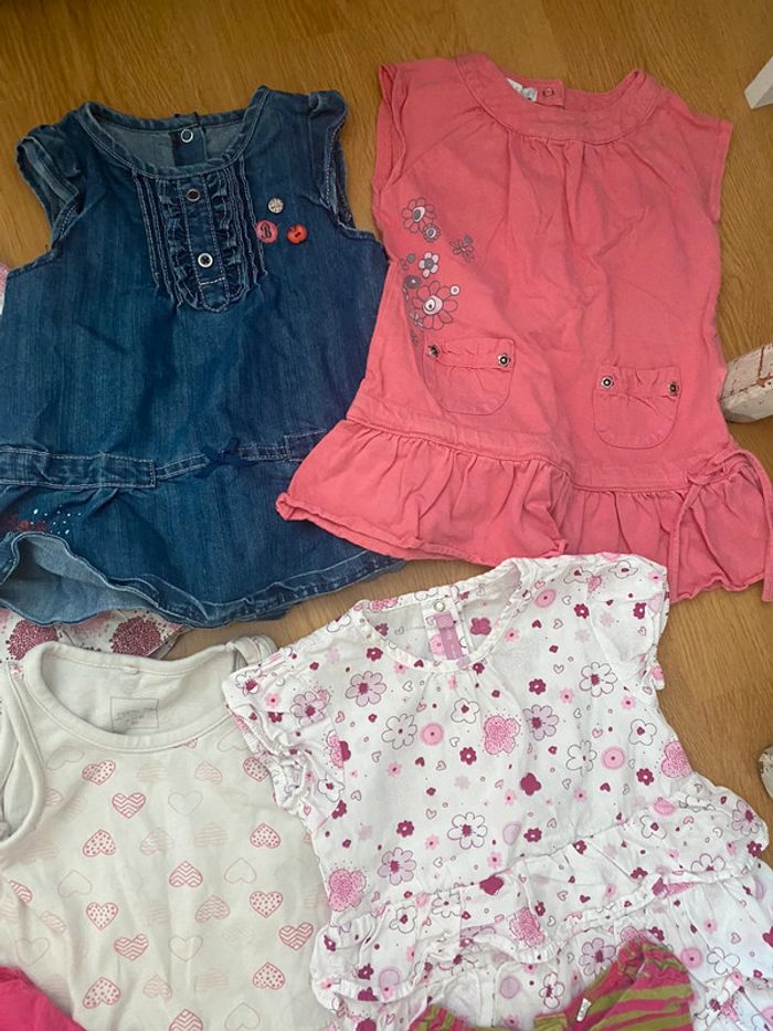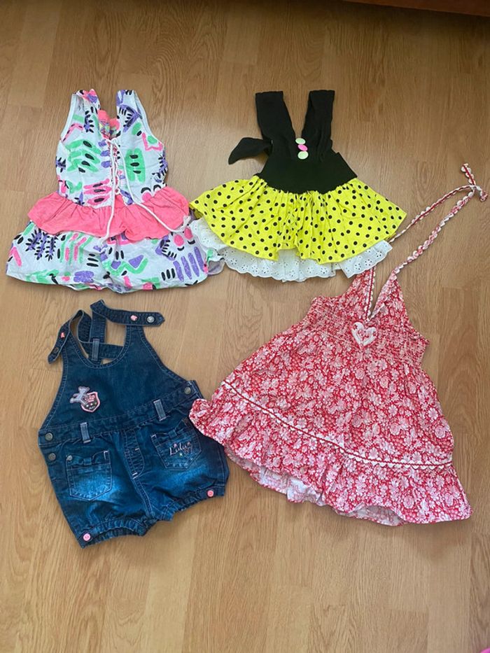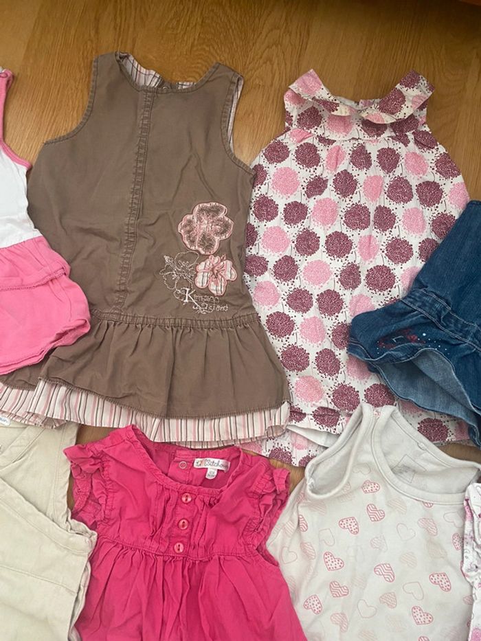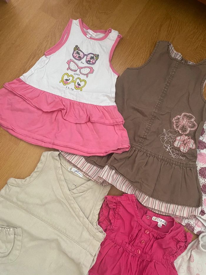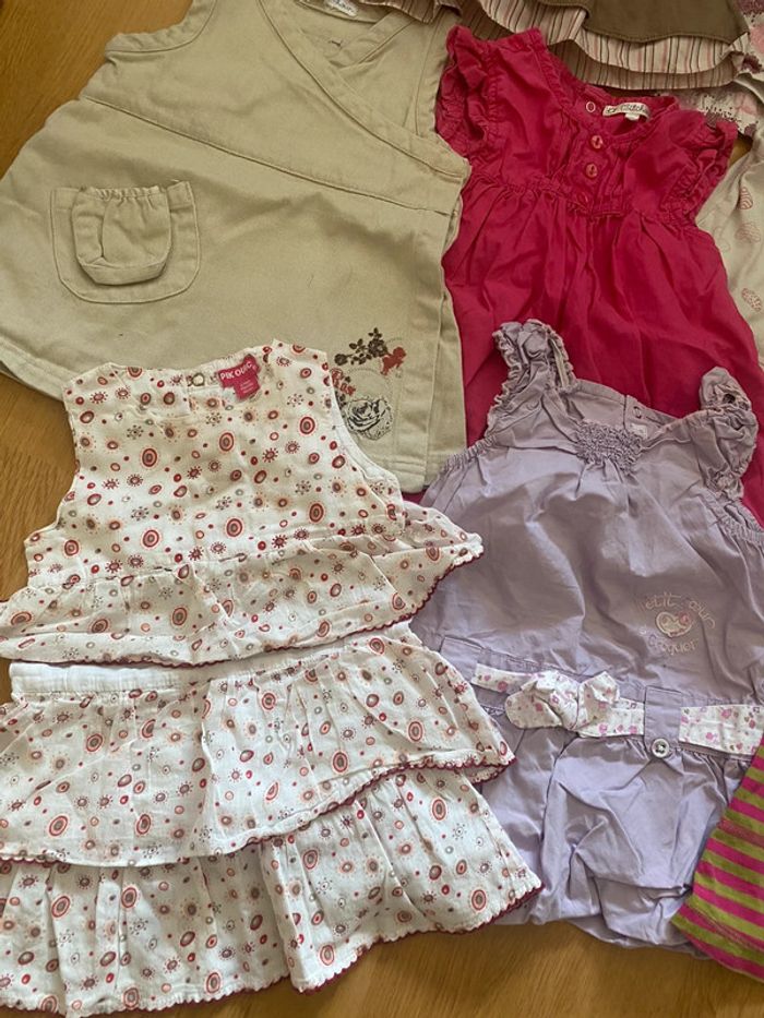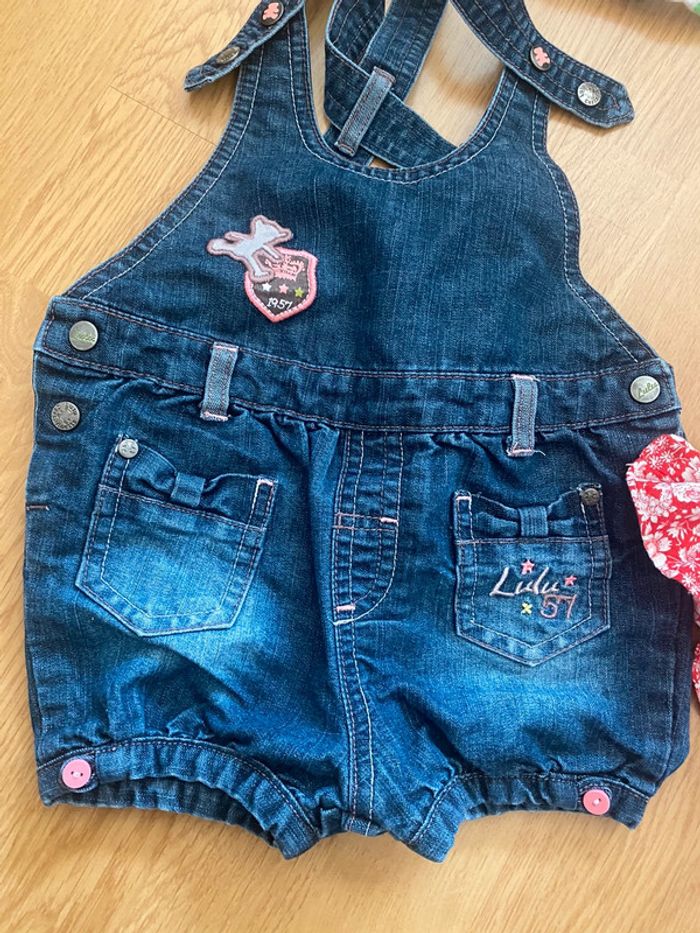 Comporte 1 salopette short permis les 16 robes. En très bon état. Divers marques comme kimbaloo, obaibi, les bébés sont comme ça, gemo, kitchoun, lulu castagnette…