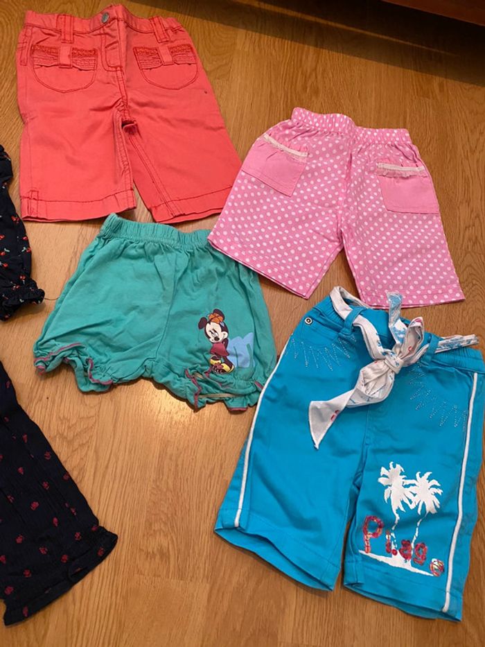 Comporte: -3 pantalons légers -2 pantacourts -2 shorts Le tout en très bon état. Divers marques (disney, kiabi…)