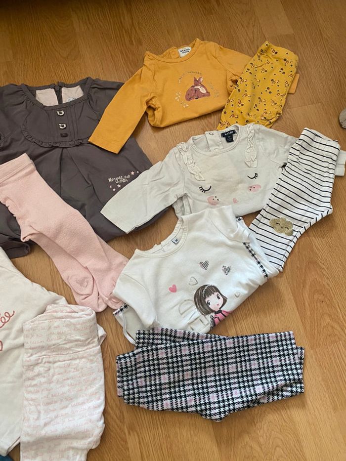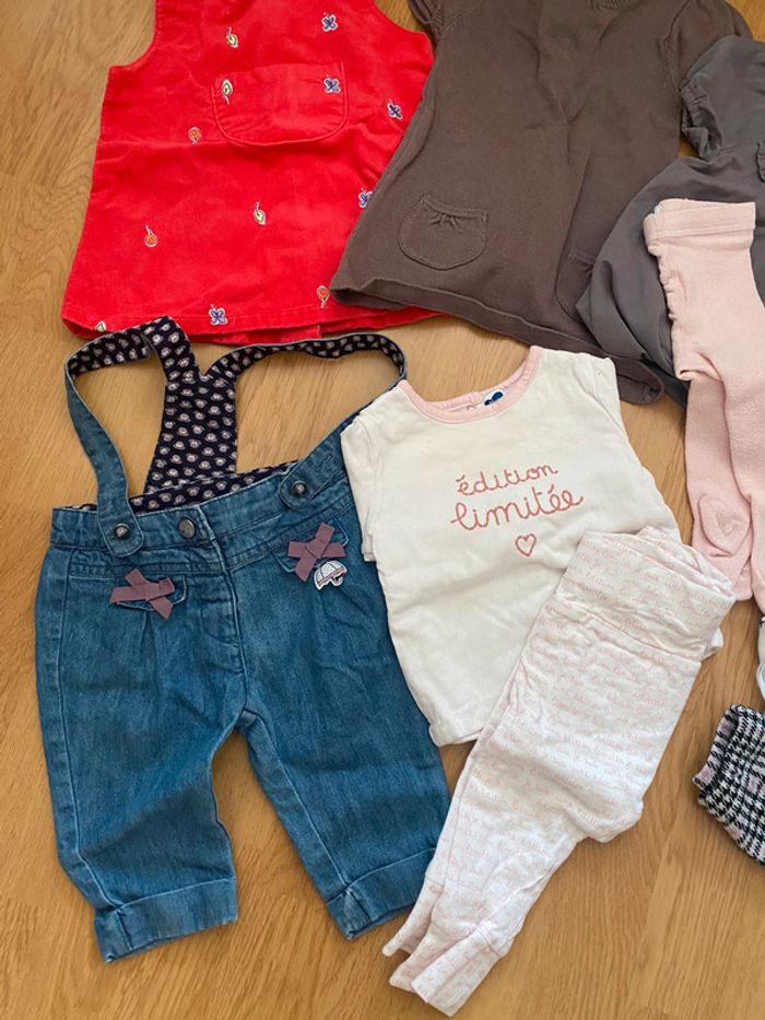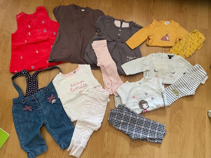 Comporte : -3 robes -1 paire de collant -1 salopette -4 ensembles Le tout en très bon état. Divers marques (sergent major, kiabi, tape à l’œil…)