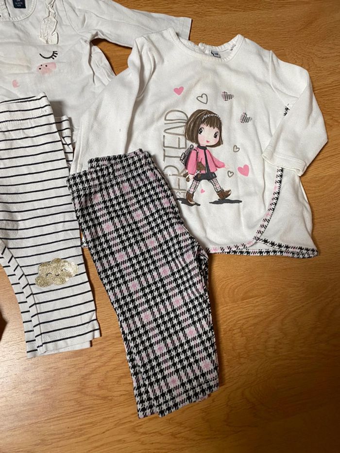 Lot qui comprend 4 tenues (bas + haut) mi saison/hiver de différentes marques ( tape à l’œil, kiabi, mots d’enfants) en 3 mois. Très bon état. Sont aussi vendus à l’unité dans mon dressing (il y a plus de photos dans les ventes à l’unité si besoin).