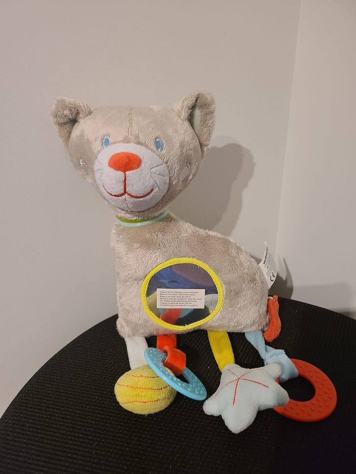 PELUCHE D'ACTIVITÉS MUSICALE CHAT VERTBAUDET DOUDOU D'ÉVEIL GRIS 25 CM 80