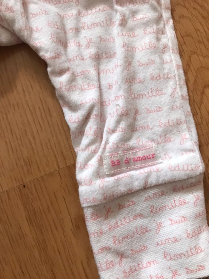 comporte un pantalon agréable a porté grâce à sa large bande élastique qui ne comprime pas pas le ventre de bébé ainsi qu’un haut. le tout en très bon état puisque peu mis.