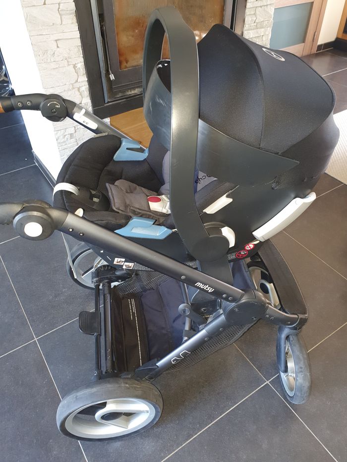 Pousette musty eco complète: Assisse, ombrelle, protections pluie, nacelle, coque cybex, base isofix cybex. En très bon état. La partie la plus abîmée est celle où l'enfant pose les pieds. A venir chercher à Cortil-Wodon belgique
