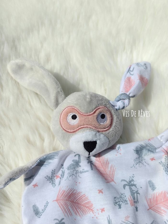 Doudou plat Chien Blanc et Gris. Masque super héros rose clair. Motif tissus blanc feuilles/plumes gris et roses, animaux tigres, palmiers... Nez et yeux noirs. Marque : Ikks, Berdoues État : Neuf sans étiquette Vous achetez le doudou que vous voyez. Entièrement vérifié. Une recherche particulière ? Tout n'est pas en ligne, n'hésitez pas à me contacter 😊 Ref : A4 #VDR_CHIEN #VDR_IKKS
