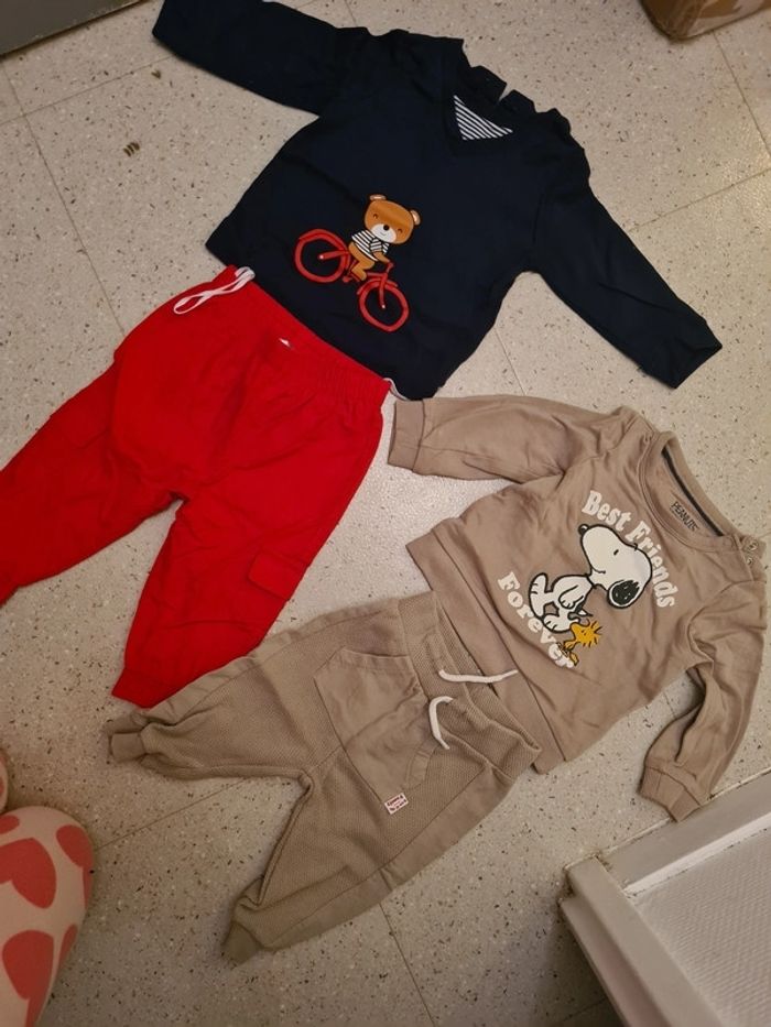 Lot 2 ensemble marque c&a en parfait état taille 12 mois Ensemble rouge mie 1 fois pull léger pantalon taille 12 mois comme neuf Le 2 ensemble a 14 euros ou 7 euros l'unité Aucune tache rien