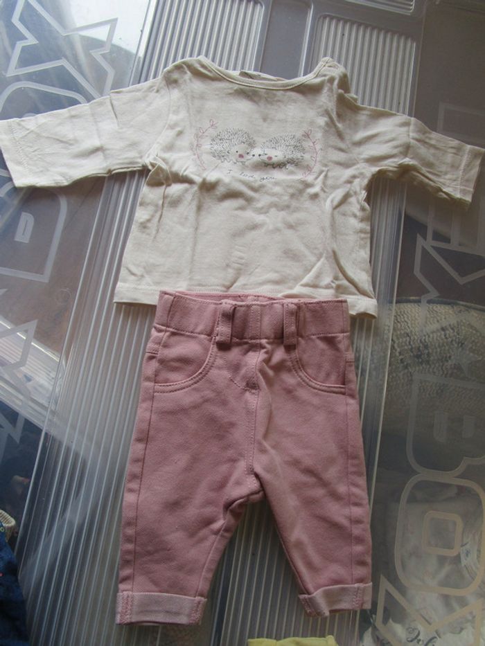ensemble pantalon kiabi+ t shirt kiabi + gilet bout'chou taille 1 mois #maudaline1mois