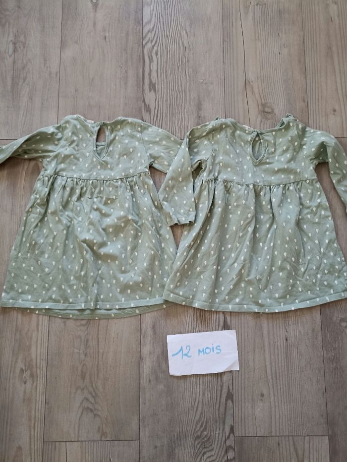 Lot de deux Robe h&m manches longues verte d'eau avec petit motifs blanc Taille 12-18 mois Idéal petite jumelles ou pour avoir en double.