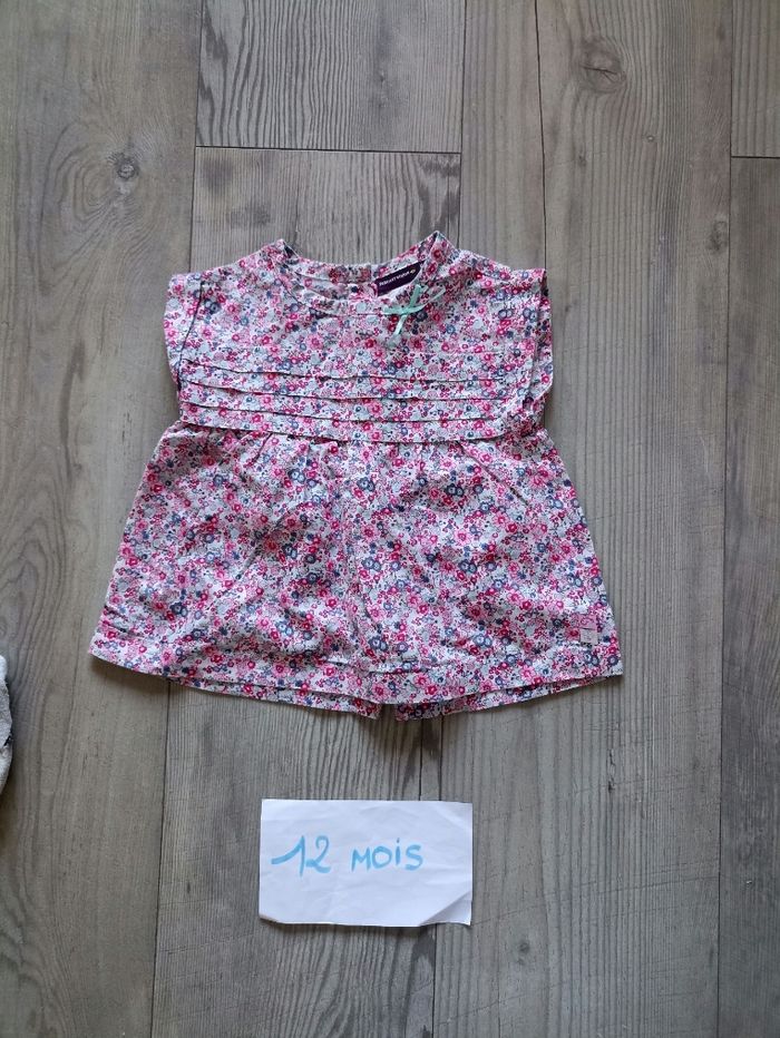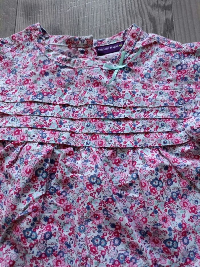 Tres beau tee shrit sergent major Avec motif petite fleurs rose et bleu Petit bouton a l'arrière