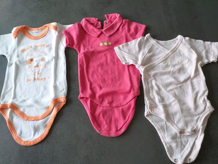 Bodie Manche courte fille en bon etat . Taille 3 mois . Beaucoup de 3 mois n'hésitez pas à faire un lot !!!