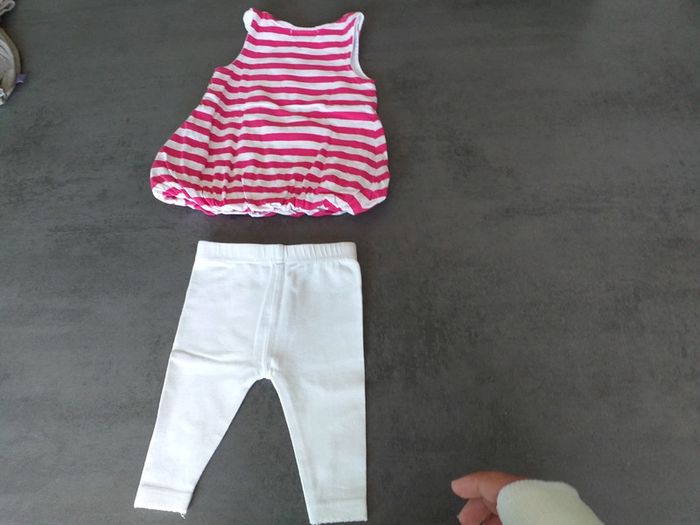 Tunique bouffante rose et blanche et leeging blanc en tres bon état .