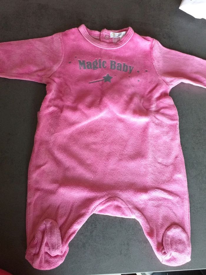 Pyjama fille rose en 1 mois en tres bon etat idéal pour la naissance ! Marque kiabi