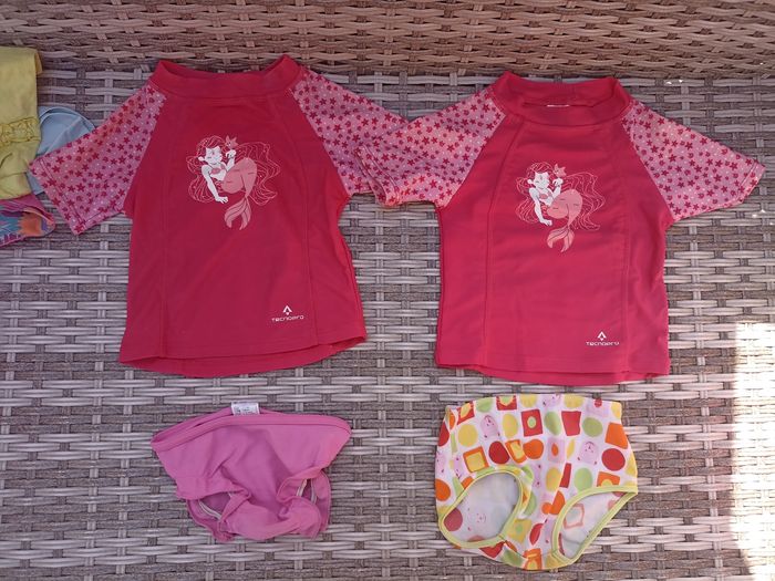 Lots de 4 articles pour la plage piscine avec deux tee shrit rose motifs petite sirène de la marque tribort Et de deux cullotes Taille 18 mois Possibilité de prendre a l'unité ou de faire un lot avec le reste de mon dressing