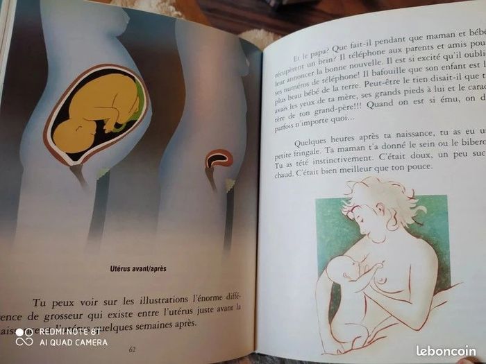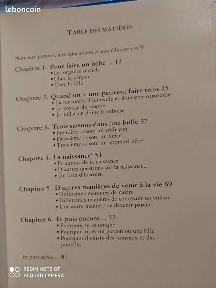 L'histoire merveilleuse de la naissance Plusieurs thèmes abordés et séparés en chapitres: 1- Pour faire un bébé... 2- Quand un + une peuvent faire trois 3- Trois saisons dans une bulle 4- La naissance ! 5- D'autres manières de venir à la vie 6- Et puis encore... 92 pages Avec des illustrations