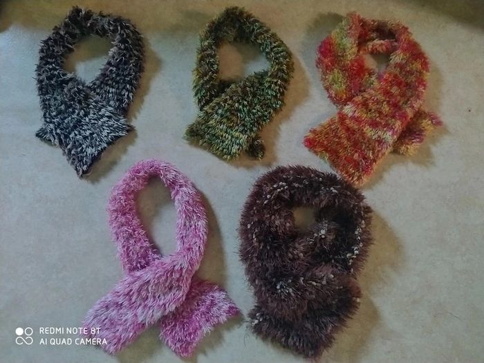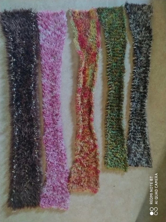 Écharpes douces et extensibles Très agrégateur au toucher 5 écharpes En très bonne état 3€ l'écharpe 5€ les 2 écharpes 10€ le lot de 5 écharpes
