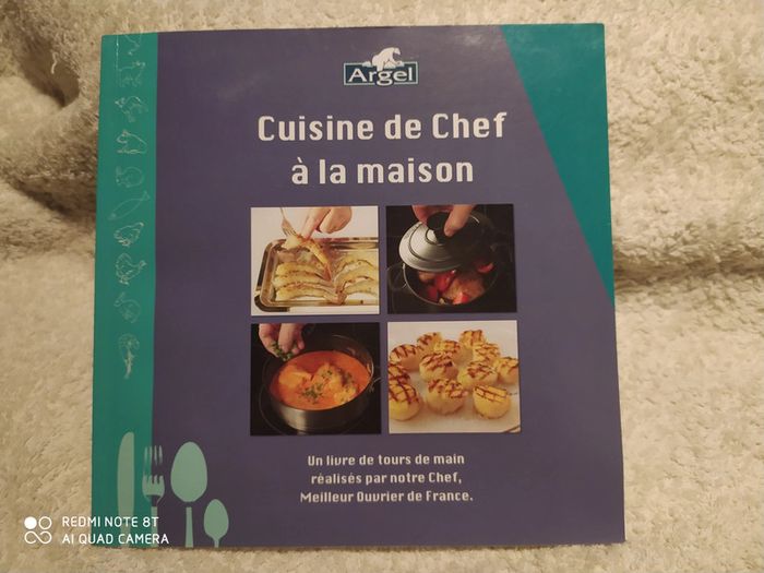 Livre de cuisine Argel pour préparer du surgelé. Plusieurs conseils pour cuisiner et préparer des ingrédients sortis du congélateur : Poisson : gambas, noix de Saint Jacques, Dos de Cabillaud, saumon, lotte Volailles : pintade, cuisses de poulet, filets de poulet Viande : gilet mignon de porc Légumes : petits pois et chou-fleur en fleurette. Pour chacun de ces éléments, plusieurs pages par ingrédients en expliquant comme décongeler et les différentes manières de cuisson et de préparation. Explications par un chef et avec des images apetissantes.