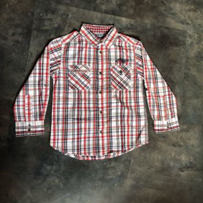 Chemise écossaise Vichy Manches longues Coton blanc rouge bleu marine gris Taille 6 ans116 cm Kiabi