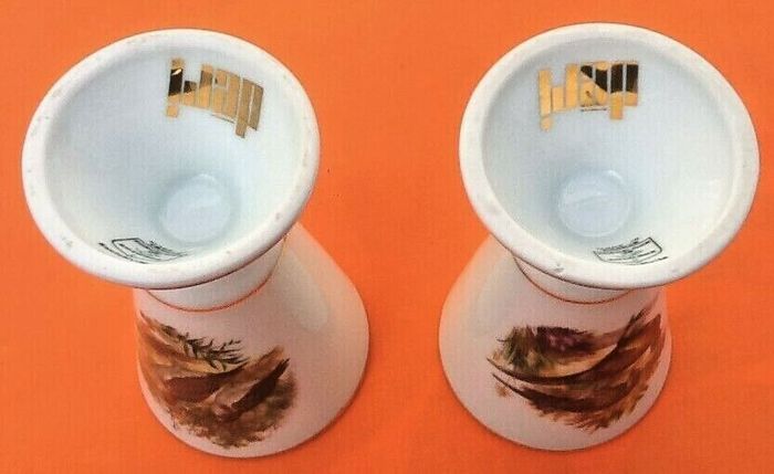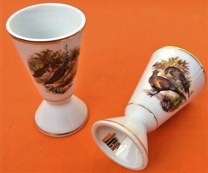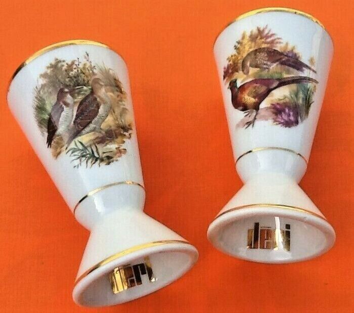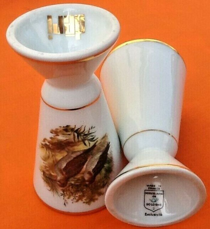 2 Mazagrans Gibier à plumes Porcelaine de Sologne Déri Made in France Hauteur : 130mm Diamètre : 78mm Poids unitaire : 260grs