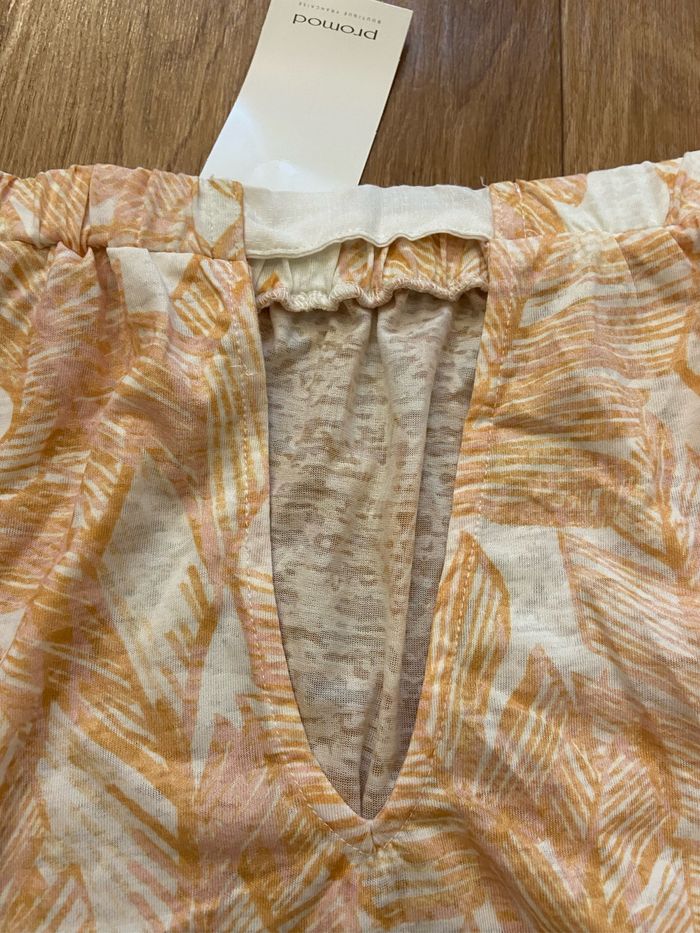 Haut bustier manches chauve souris Crème et moutarde imprimé feuilles Matière légère et agréable Polyester et viscose Ouvert sur le dos