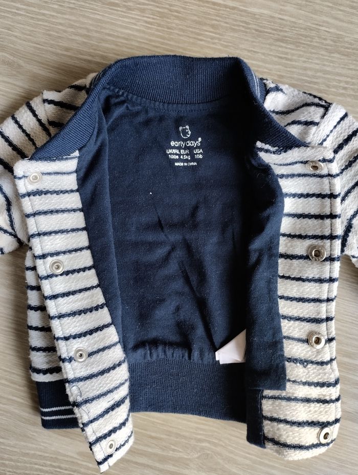 Gilet, fermeture boutons à pression. Très bon état. Taille 0-3 mois. Marque Early Days.