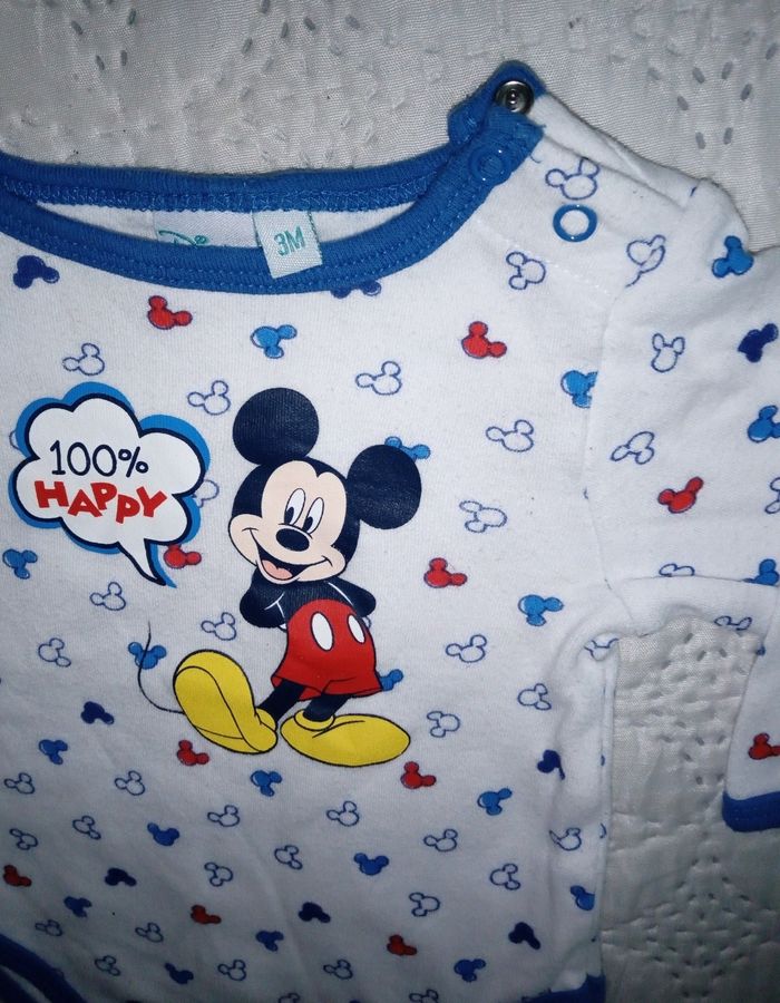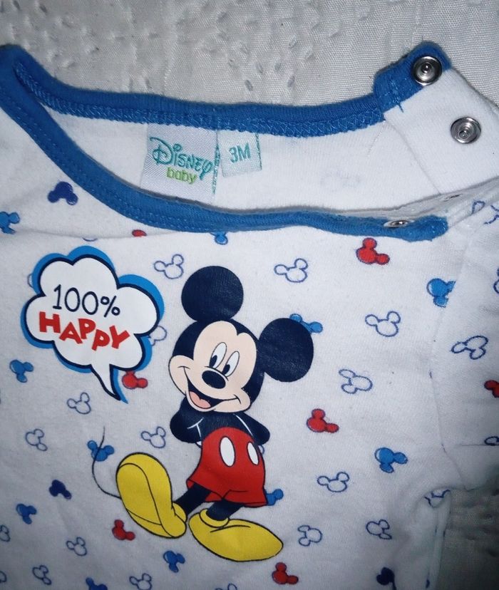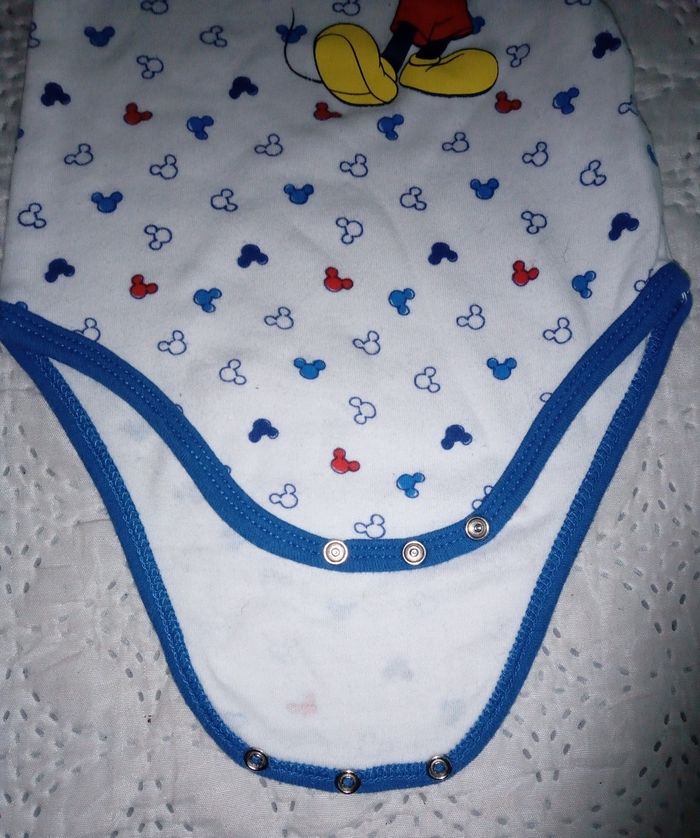 1 body Mickey Disney baby Taille 3 mois 3 bouton pression sur le bas plus des autres sur l'épaule, pour faire passer la tête de bébé facilement.