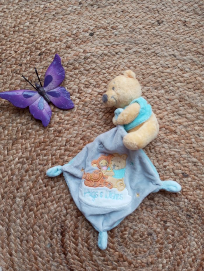 Disney baby Doudou winnie l'ourson Jaune gris bleu Broderies Tigrou Hugs & wishes ‼️ Étiquette de composition absente #douceur_disneybaby C26