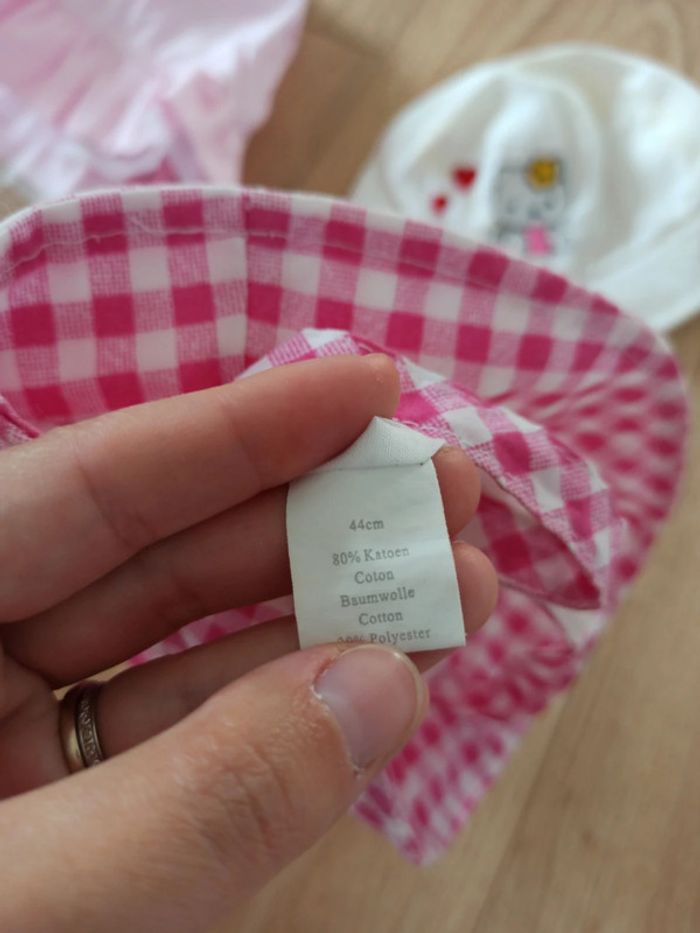 Le rose clair 38cm Le Vichy rose 44cm Le blanc 44cm J'offre le blanc car il a des tâches jaunes