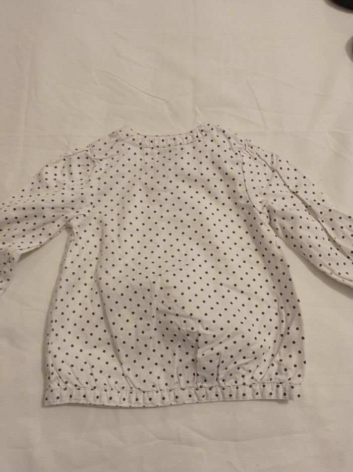 Tunique pour fille couleur blanc petit pois noir marque tape à l'oeil taille 12 mois 74 cm bouton devant avec petit dentelle voir photos - photo numéro 3