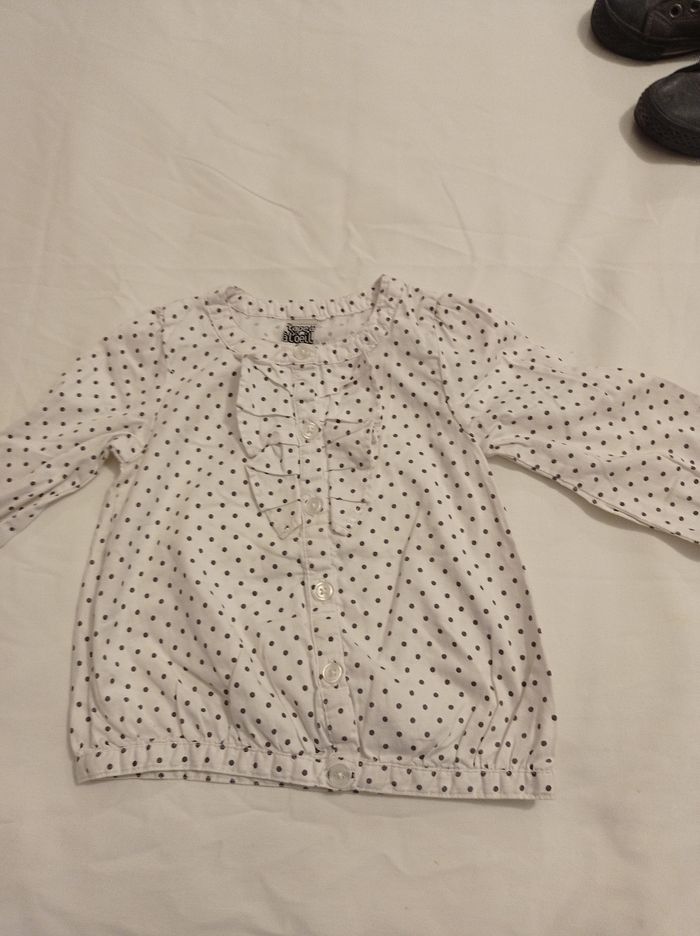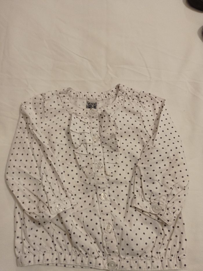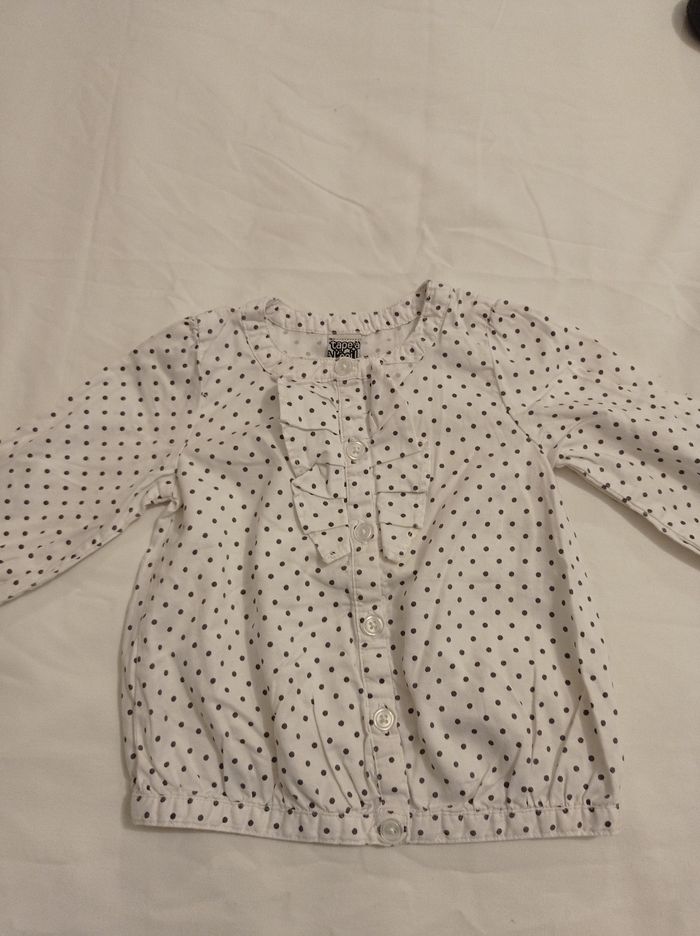 Tunique pour fille avec de la dentelle devant bouton couleur blanc petit point noir manches longues marque tape à l'oeil taille 12 mois 74 cm voir photos
