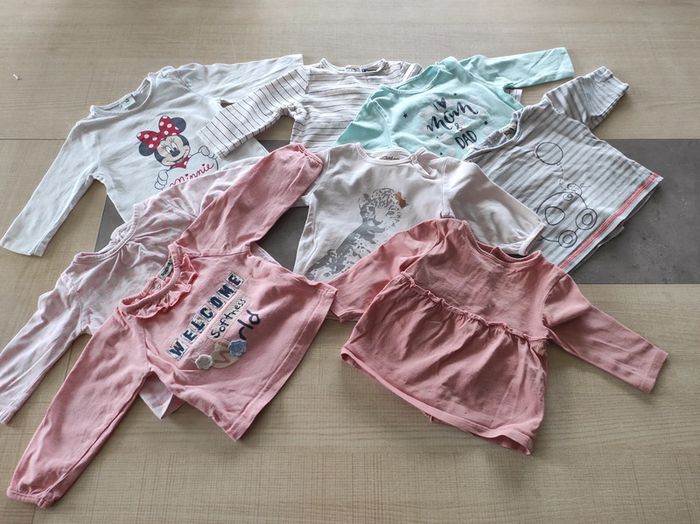 Lot de 8 t shirt manches longues taille 3 mois. En très bon état.