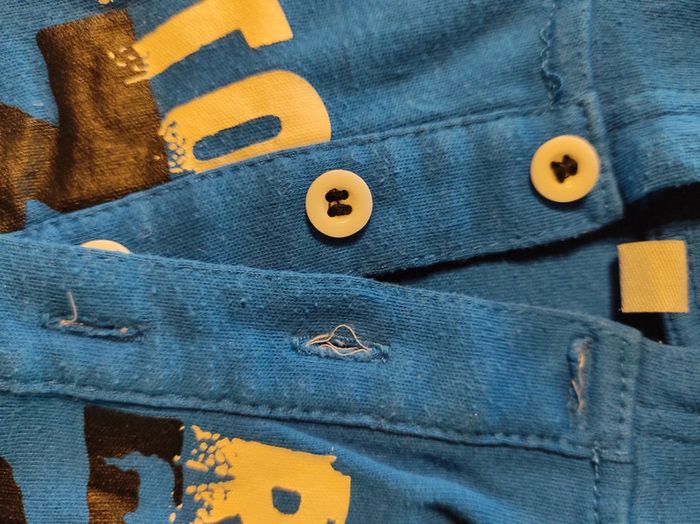Sweat à capuche 18 mois bleu. Le passage des boutons est un peu effiloché, voir seconde photo.