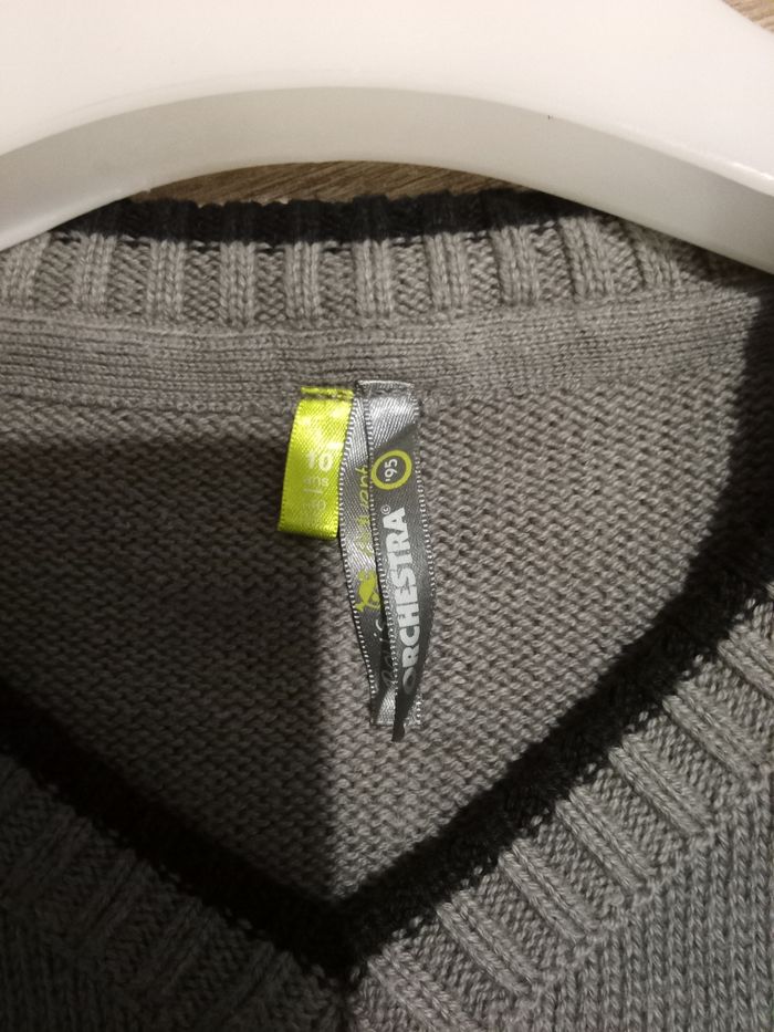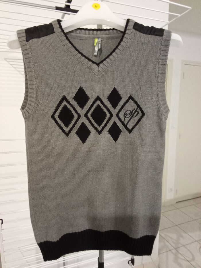 Débardeur noir et gris avec motif jacquard sur le devant , garçon, taille 10 ans , très bon état, marque Orchestra