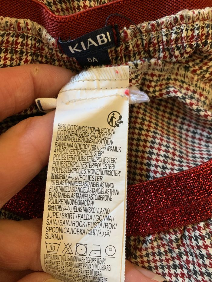 Jupe avec étage plissée Ceinture elastique à paillettes Motifs petits vichy bordeaux et noir De la marque Kiabi Taille 8ans
