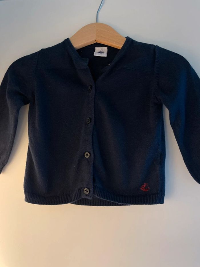 Gilet/ Cardigan Petit Bateau En très bon état En coton Couleur bleu marine Taille 12 mois / 74 cm Non fumeur Pas d’animaux