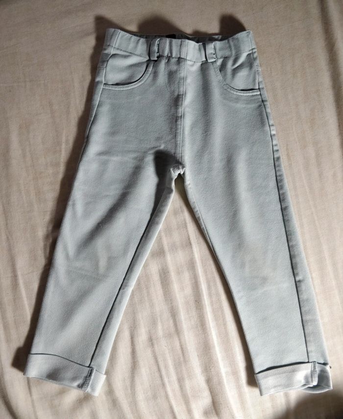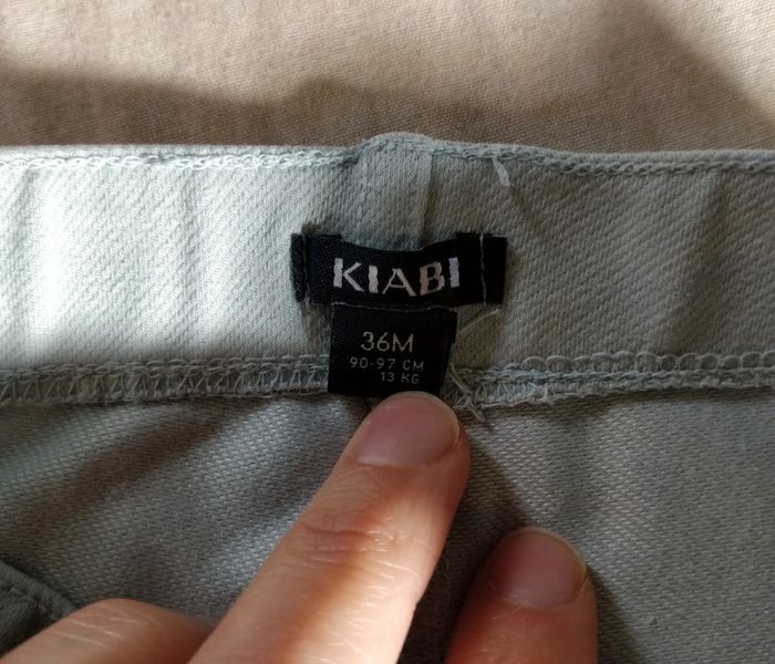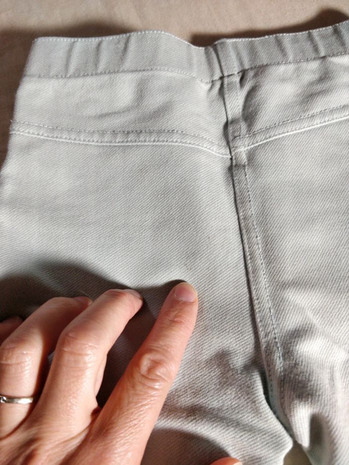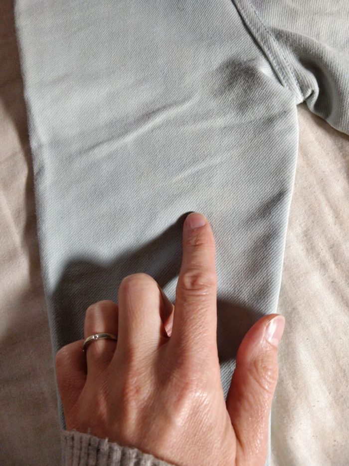 Pantalon léger bleu ciel. Très confortable et du coup pas mal porté, quelques petites tâches et légère trace de décoloration (cf les 2 dernières photos).