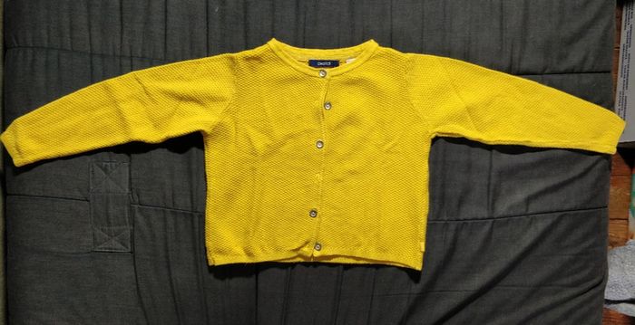Gilet jaune moutarde, taille 3 ans (98 cm). Attention, Okaïdi a tendance à tailler petit.