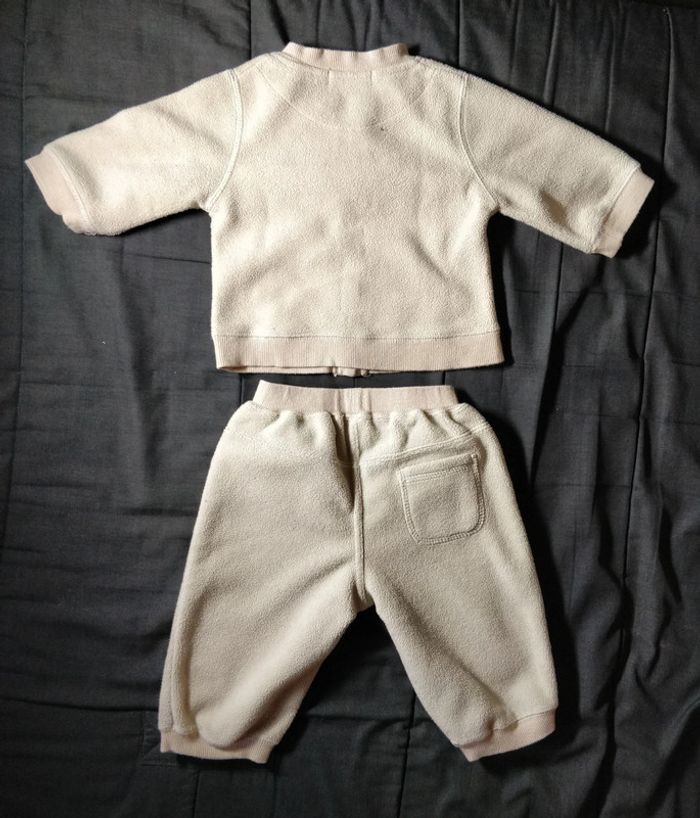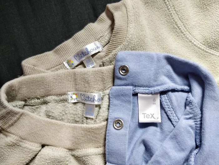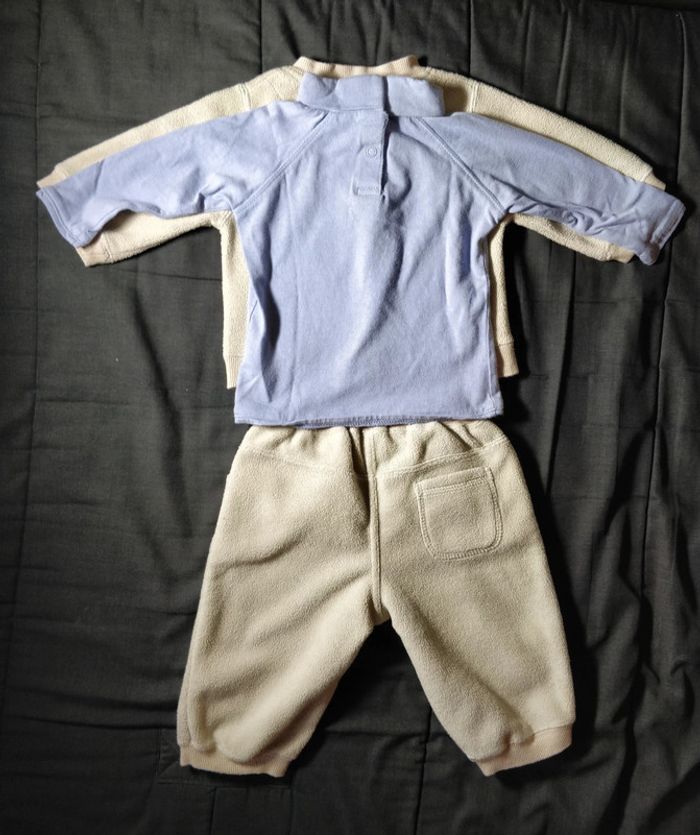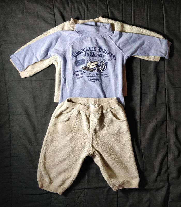 Pantalon, veste polaire (Kitchoun) et t-shirt à manches longues (Tex). La veste va avec tout et est très confortable. Le t-shirt à un petit trou sur une des manches (cf photo).