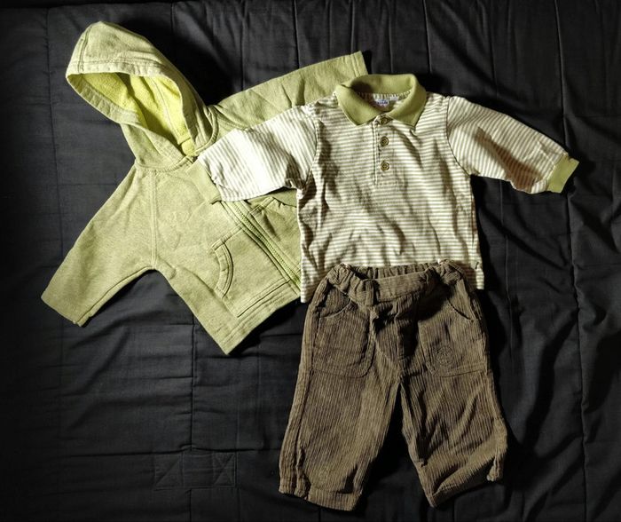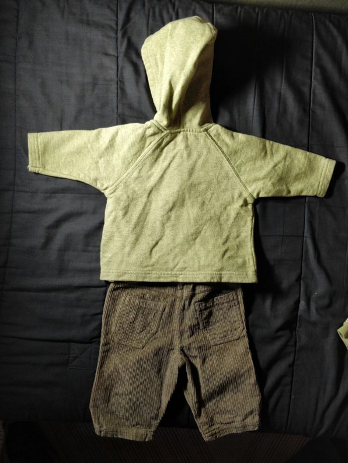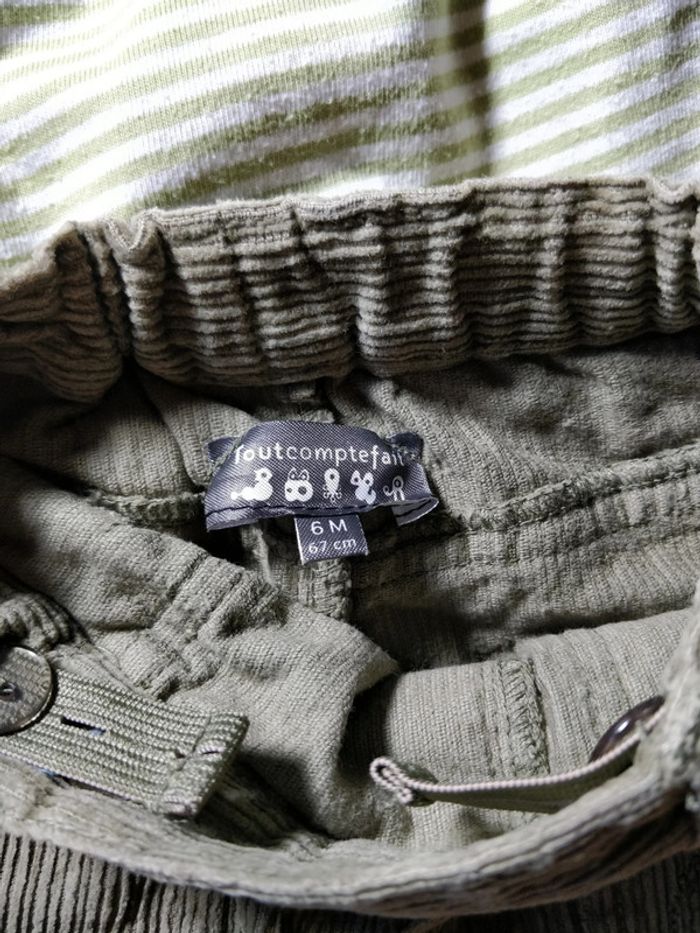 Pantalon velours (Tout compte fait), t-shirt à manches longues (Kiabi) et gilet à capuche (ne sais pas).