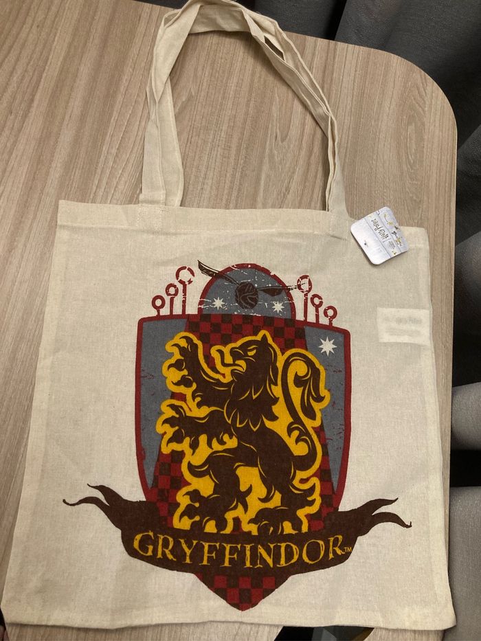 Superbe tote bag avec l’écusson de griffondor l’une des maisons de poudlard l’école de sorcellerie d’Harry potter Neuf et étiqueté Dimensions environ 35 par 35cms Non commercialisé en France Non négociable Envoi rapide et soigné