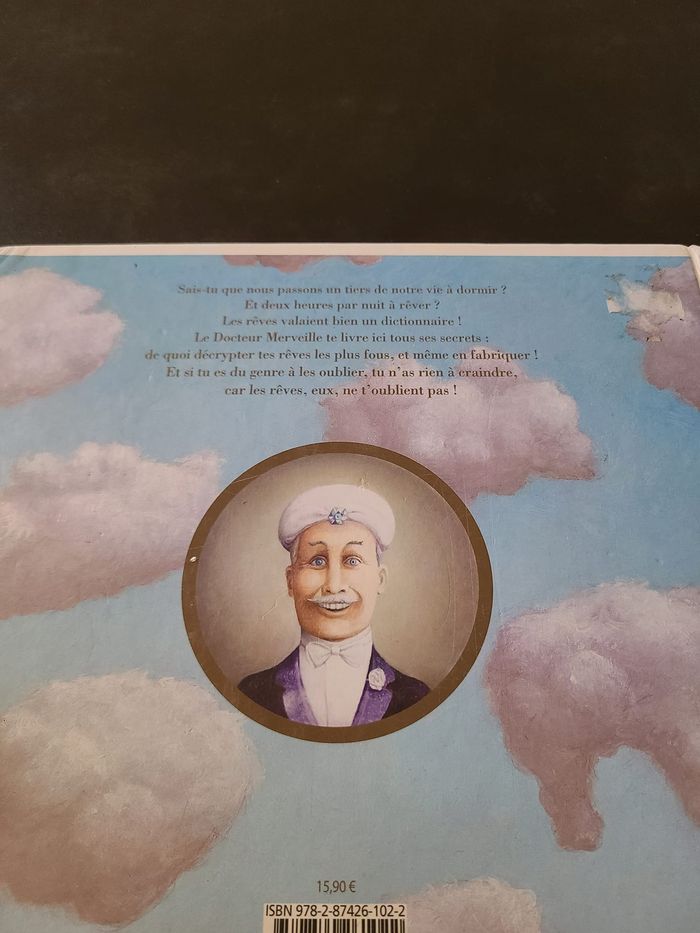 Le dictionnaire des rêves du docteur Merveille Sais-tu que nous passons un tiers de notre vie à dormir ? Et deux heures par nuit à rêver ? Les rêves valaient bien un dictionnaire ! Le Docteur Merveille te livre ici tous ses secrets : de quoi décrypter tes rêves les plus fous. et même en fabriquer ! Et si tu es du genre à les oublier. tu n'as rien à craindre, car les rêves, eux, ne t'oublient pas ! dernière photos coin légèrement abimé