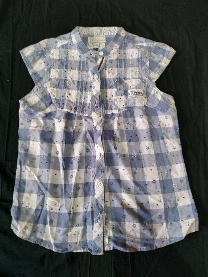 Tres bon etat, chemise fille sans manches, motif a petites fleurs.
