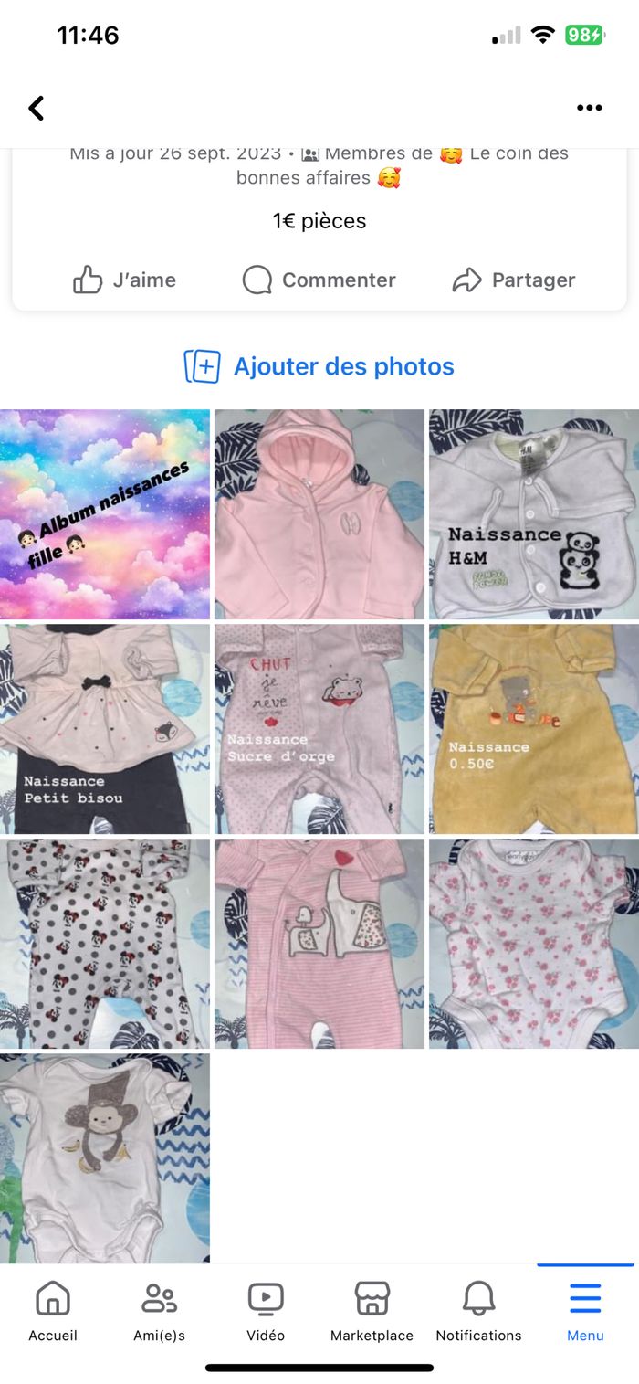 Lot vêtements naissance et 1 mois fille