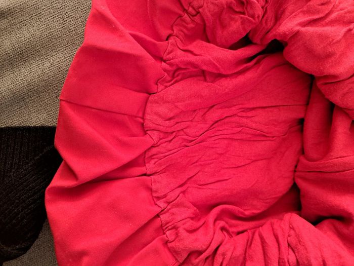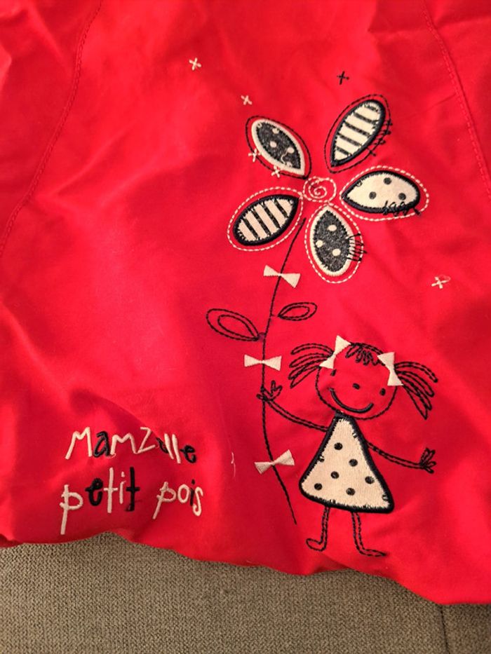 Robe boule rouge taille 23 mois . Elle est chaude parfait avec un collant en laine et un t shirt en dessous aucune tache ni trou seulement peine à se fermer tout en haut de la robe