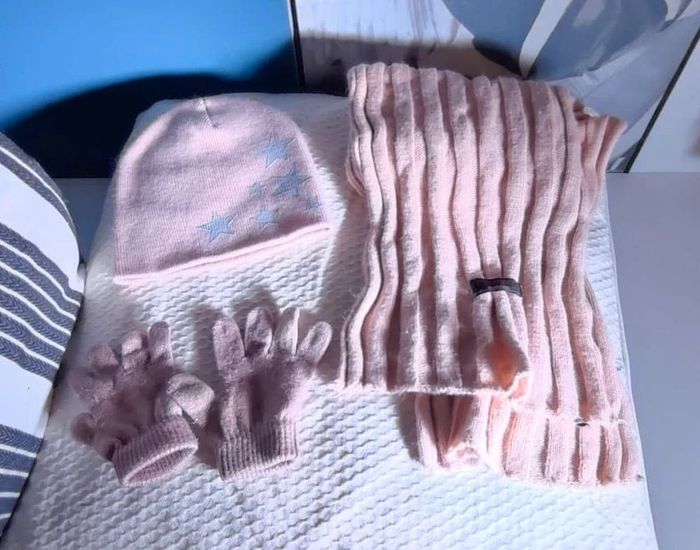 Ensemble rose écharpe + gants + bonnet