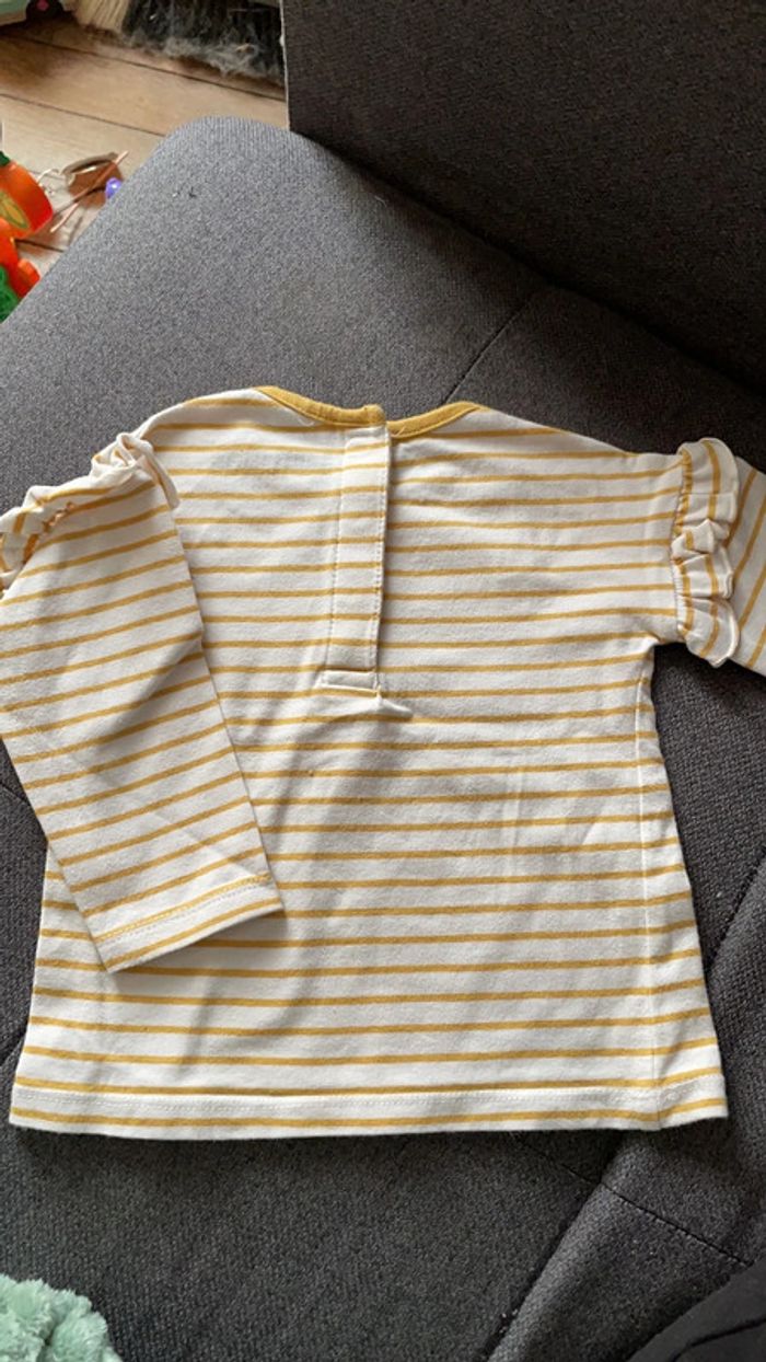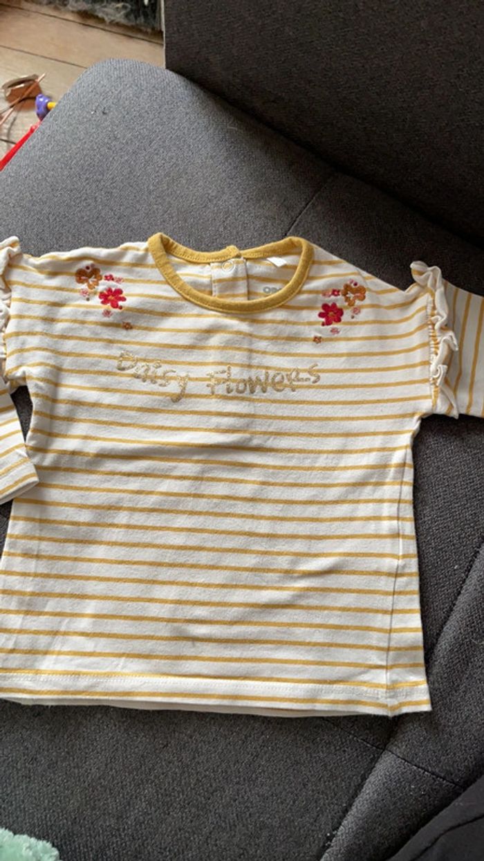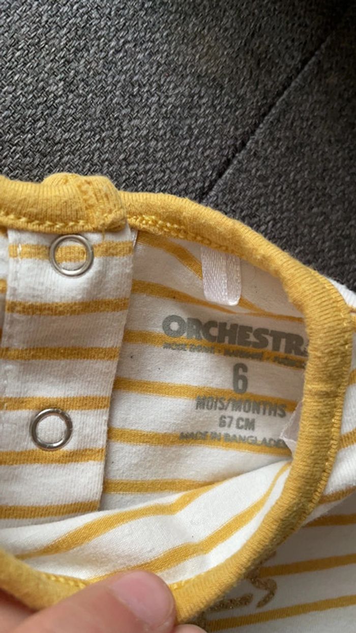 Taille bien. Matière élastique. 3 pressions dans le dos pour faciliter le passage de la tête. Taille 6 mois. N’hésitez pas à faire un tour dans mon dressing, les réductions sont activées 🌸